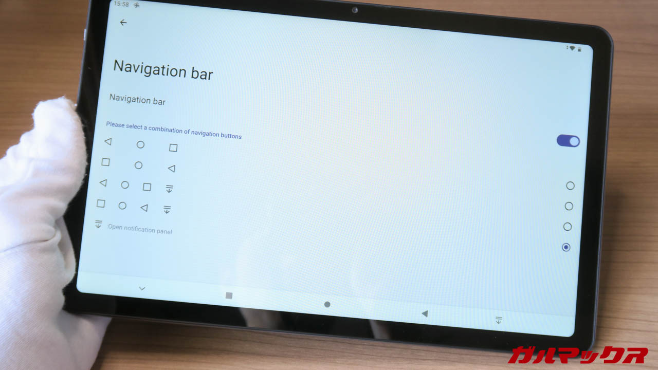 ▼Pixelスマホ含めてフツーのAndroidデバイスってナビゲーションバーがいじれないから「← ○ □」みたいなクソ配置から変えられないのがネックですが、NPad Proはバッチリカスタマイズ可能。↓