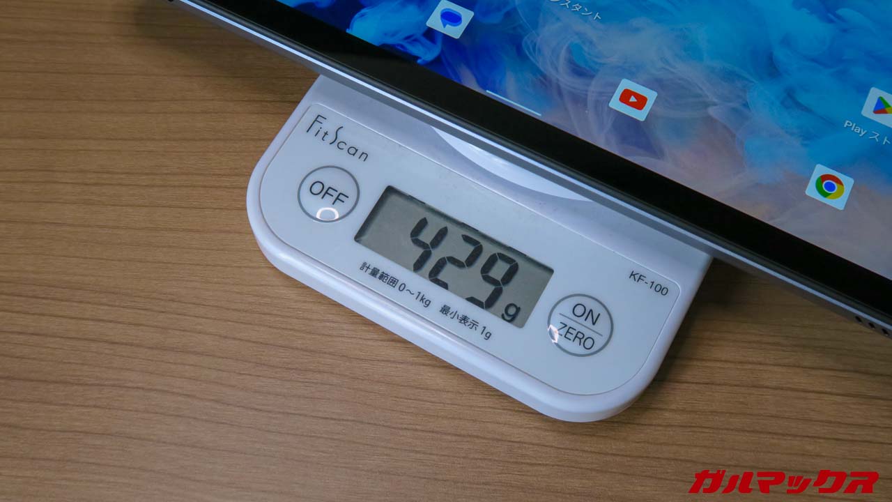 ▼重量は実測で429gでした。10型タブレットって大抵480g~520gのものが多いのですが、NPad Proはその中でも抜きん出て軽いです(`・ω・´)。↓