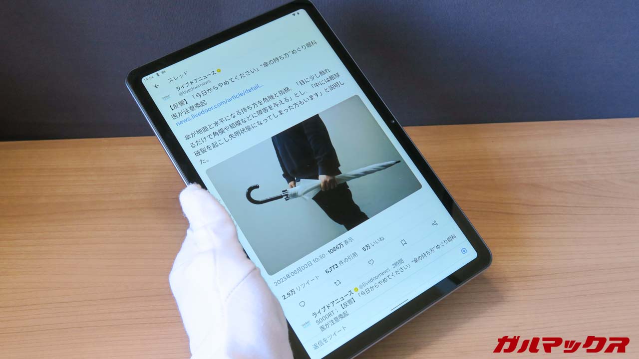 ちなみに音の出力は正常でした。過去にレビューしたモデル「NPad Air」「NPad Plus」では入れ替わっていたんだけど、NPad Proは正常に左右から出力されています。ただし上下逆にしても音の出力の位置は固定でした。