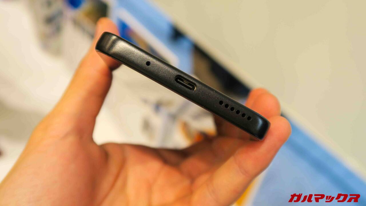 ▼あとイヤホンジャックも非搭載なんで、有線でイヤホンを使う方はこの点に要注意です。ミドルスマホだとまだまだ搭載するモデルは多かっただけに悔やまれるところです。↓