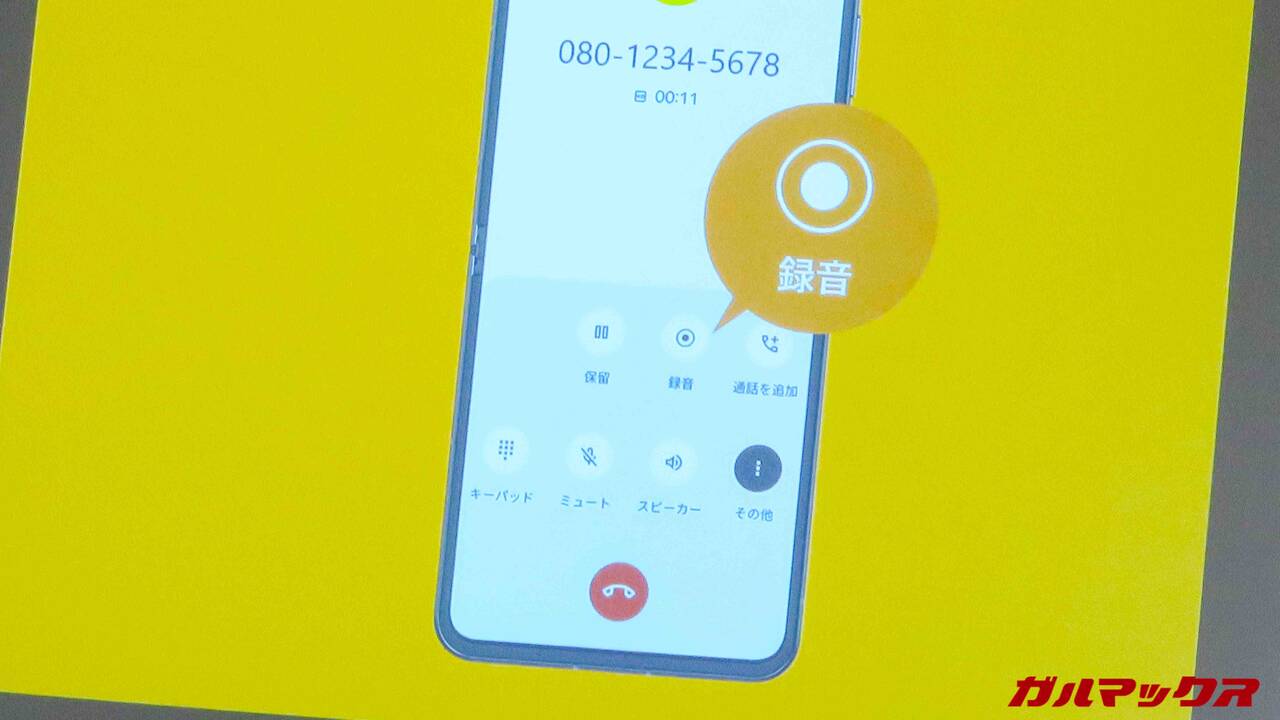 ▼あと、通話録音機能も対応!通話内容を保存できるので、通話しながらやりとりをメモらず焦ることがないってのが便利で良いんですよね(なお録音している旨は音声ガイダンスで相手に伝わります)。↓