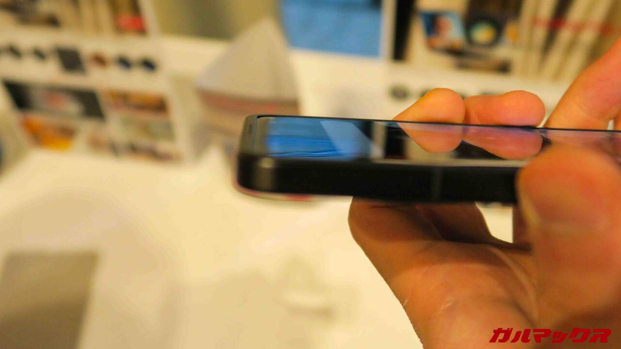 ▼ベゼルは画面より突出していますが、盛り上がりがほとんど無いので画面端のタップがしにくい、ということはなさそうです(`・ω・´)。↓