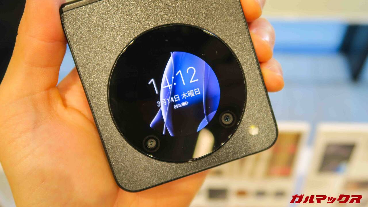 ▼折りたたみスマホといえばサブディスプレイ!nubia Flip 5Gもタッチ操作可能なサブ円形ディスプレイを完備しています。ウィジェットもあるんで、スマートウォッチみたくカメラを操作したりとか、天気予報とかみたりもできちゃう仕組み。↓