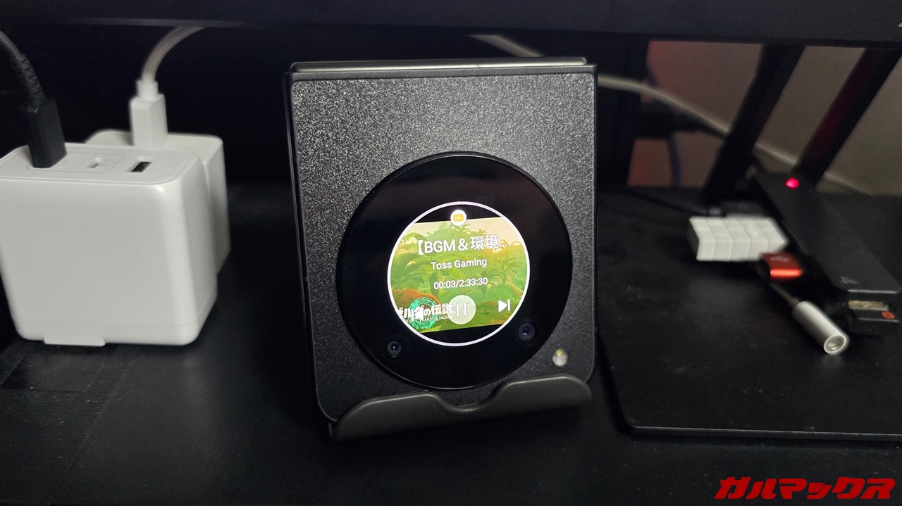 ▼今のところサブディスプレイはメディアコントロールとタイマーが結構使えるって印象。開くのさえ億劫なちょっとした時間でも曲のスキップや一時停止ができるっちゅうのは良いと感じた(`・ω・´)。↓
