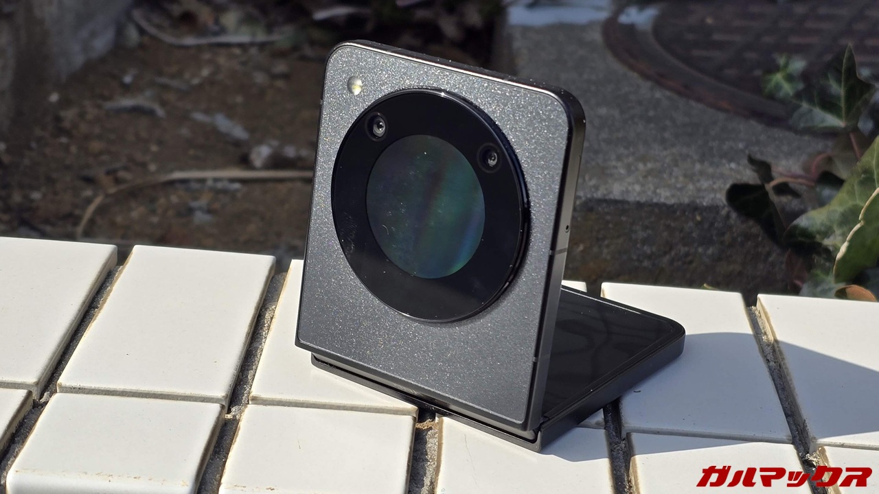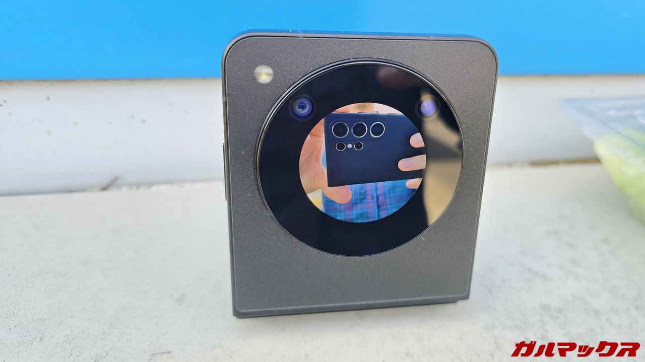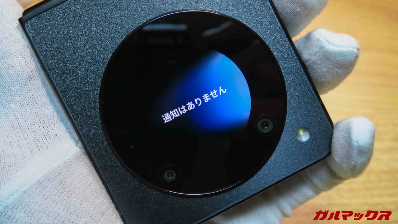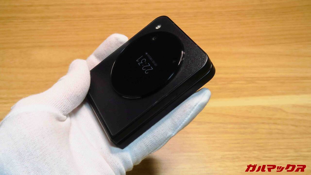 ▼外側に搭載された1.43インチのサブディスプレイでカメラのプレビューも表示できるんで、ある程度離れてもざっくりとした構図がわかるってのもGood。↓