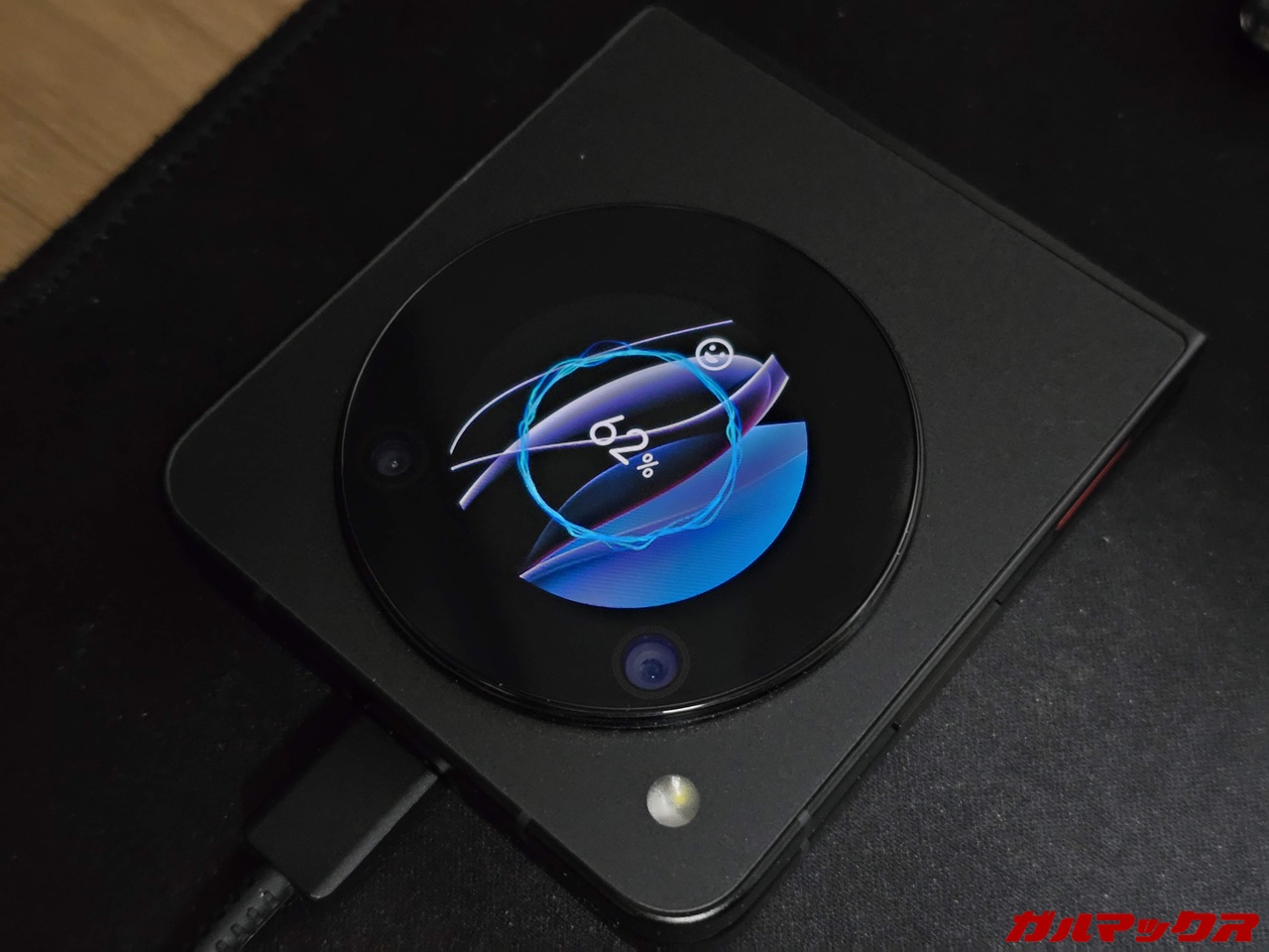 ▼ただし充電は最大33Wなのでハイエンドほど早くはないです。ライトユースであればなら気になることはなさそうですが、ヘビーユースの多い方は注意。あとサブ画面でもしっかり充電アニメーション出してくれるの、地味にこだわってて好きです。↓