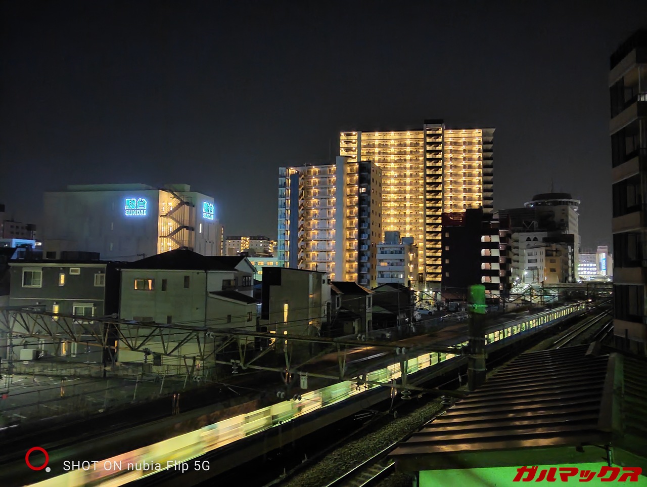 続いて夜間撮影。Libero Flip 5Gと同様にセンサーサイズが小さいためか、ややノイジーさも感じるのですが‥スマホとか小さい画面で見る分なら気にならんかったです。