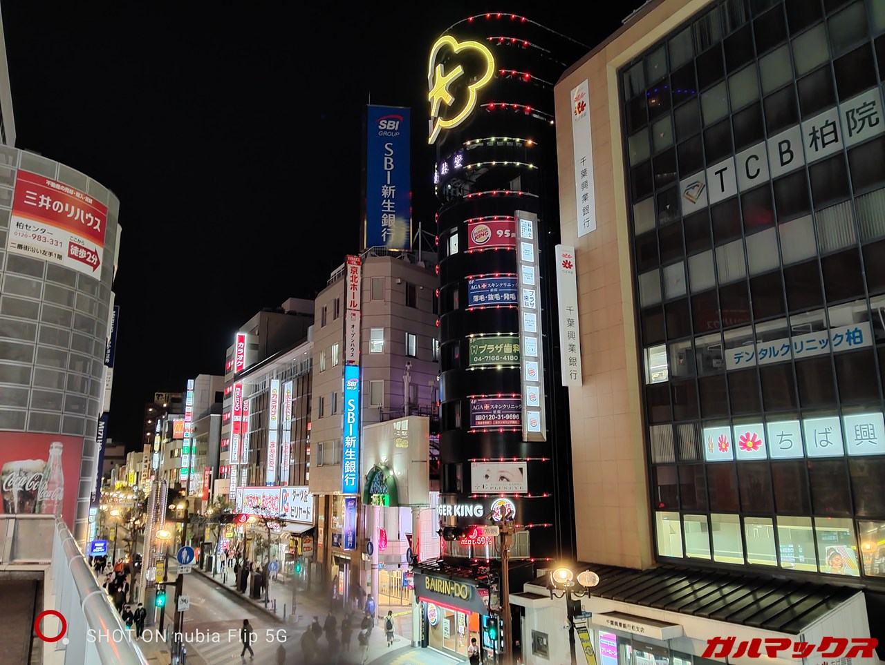ただし解像感は低めで、建物の輪郭といった細かい部分がブロックノイズみたいに粗いのは気になる。折りたたみスマホゆえに割り切るべしか。