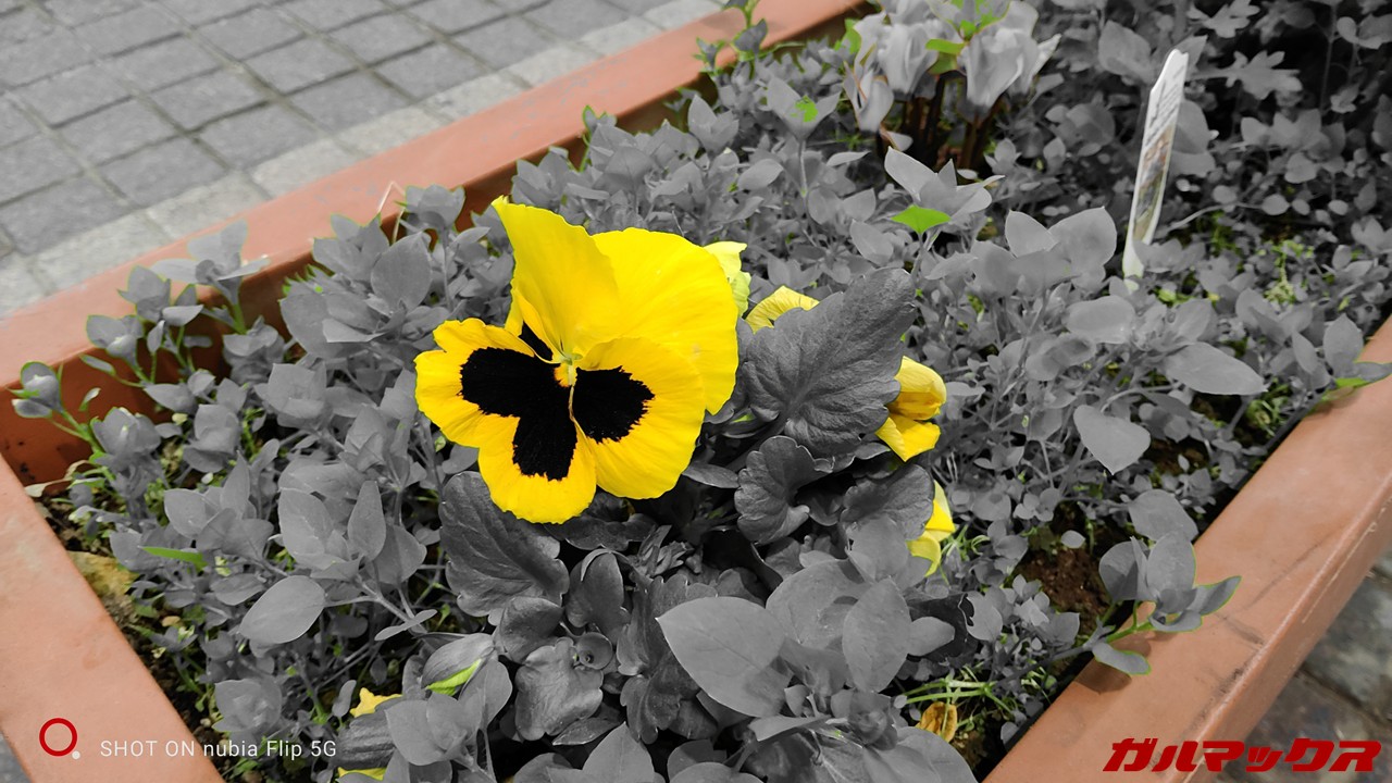 ▼あとはカラーを指定して撮影できる機能も対応。たとえば花をタップすると、その花の黄色だけをとらえて他の色をグレーにするという写真も撮影できました。黄色系のカラーが全部とらえられるので、鉢や茎の色も出てしまってますが‥↓