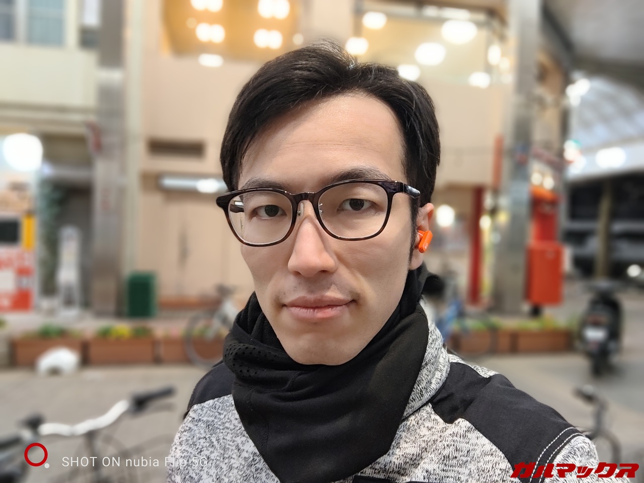 ▼インカメラの自撮りはこんな感じ!ポートレートも対応しており、明るさとリアリティ、背景の切り分け精度ともにバッチリ。↓