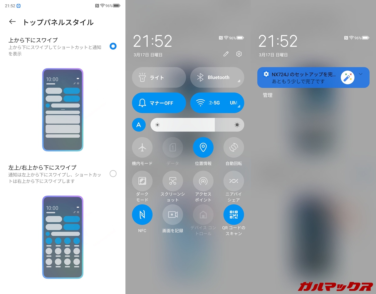 ▼通知コントロールメニューも、通知とコントロールで画面を分ける分離式に対応していました。MIUIのアレみたくできるぞ!↓