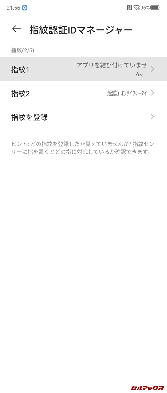 ▼これは「登録した指のうち、特定の指紋を認識するとロック解除と同時に指定アプリを起動する」って機能!近いところでいうとMIUIのセカンドスペースに似た挙動かな。↓
