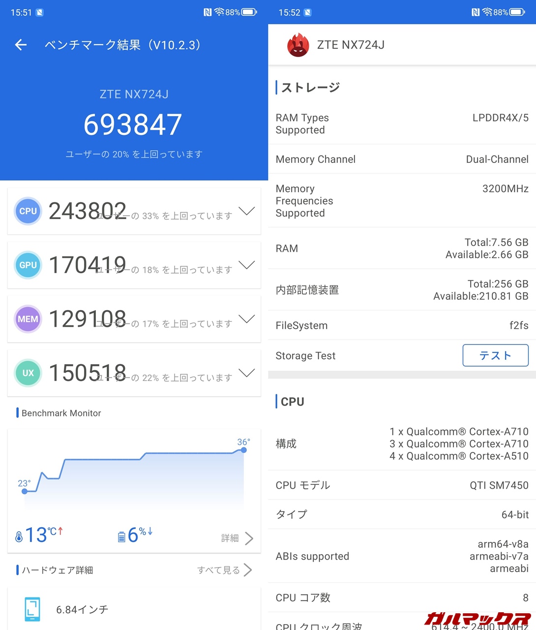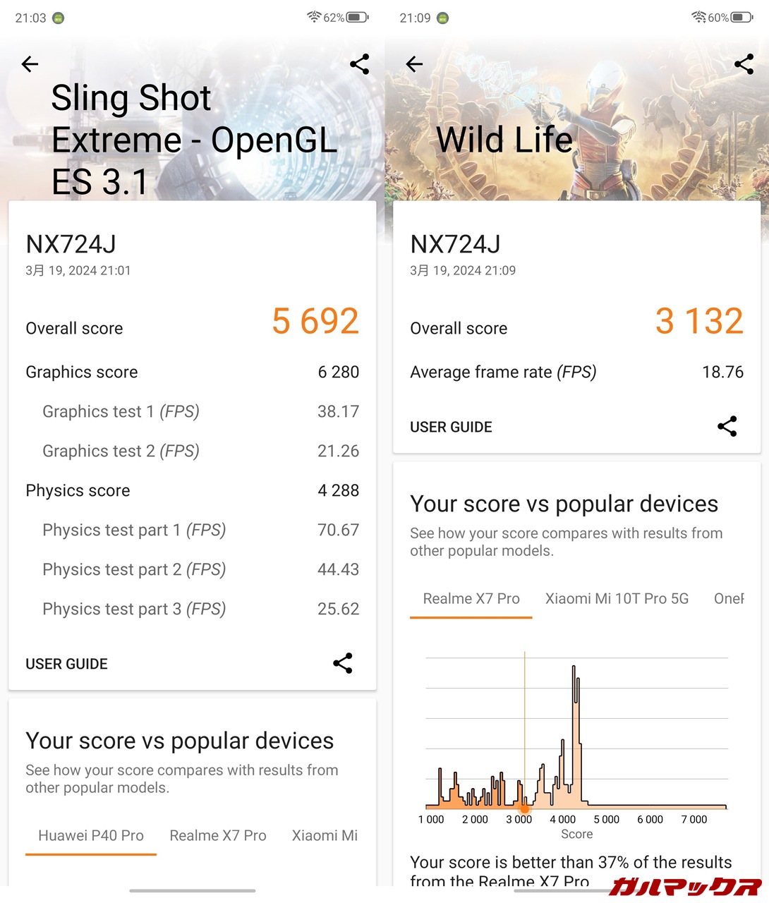 今だと2世代目のチップセットも出てるんでこちらはあくまで型落ち、とはいえ動作速度は快適でした。AnTuTu 60万点クラスともなれば、普段使いで支障は感じることは無いでしょう(`・ω・´)。