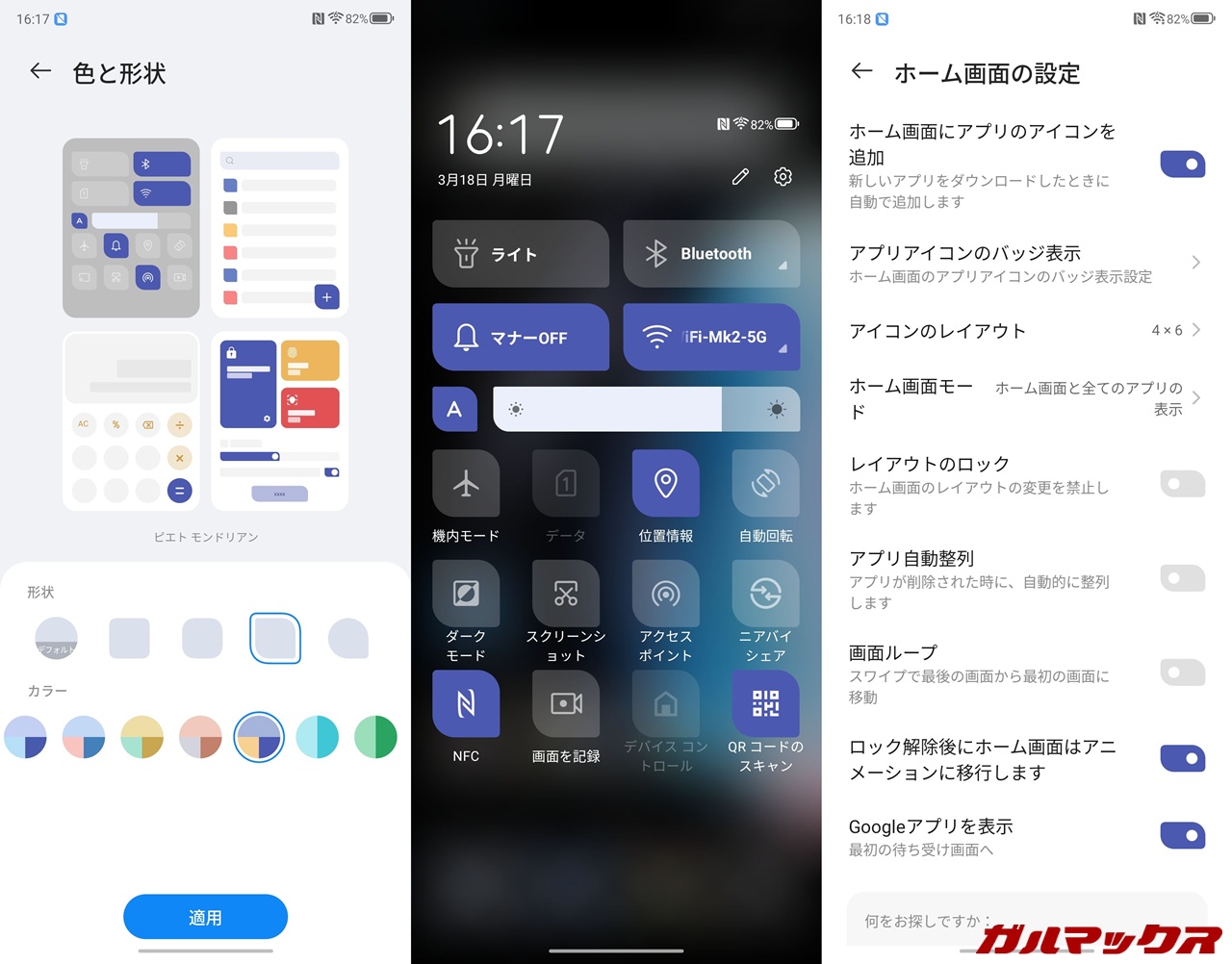 ▼あと、UIの見た目も結構カスタマイズできます。アクセントカラーの変更はもちろんなんですが、アプリアイコン、切り替えのスイッチアイコンの形状まで変えられる!これは他で見られなかった部分なので結構面白い(`・ω・´)。↓
