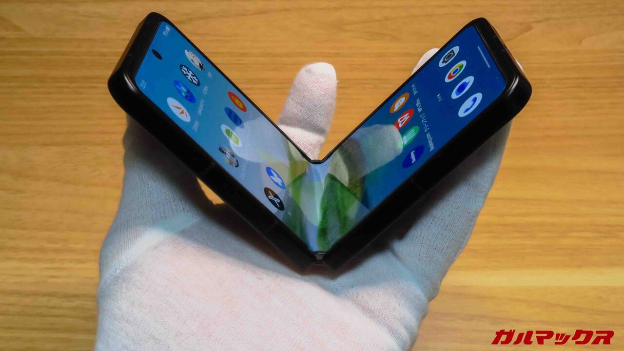 タッチの反応も鈍くなるということはなく、いい意味で普通に使っています。かつてGalaxy Z Flipを使ってた身としては最初は違和感を感じるんだけど、慣れるとどうってことなくなるって感じ。