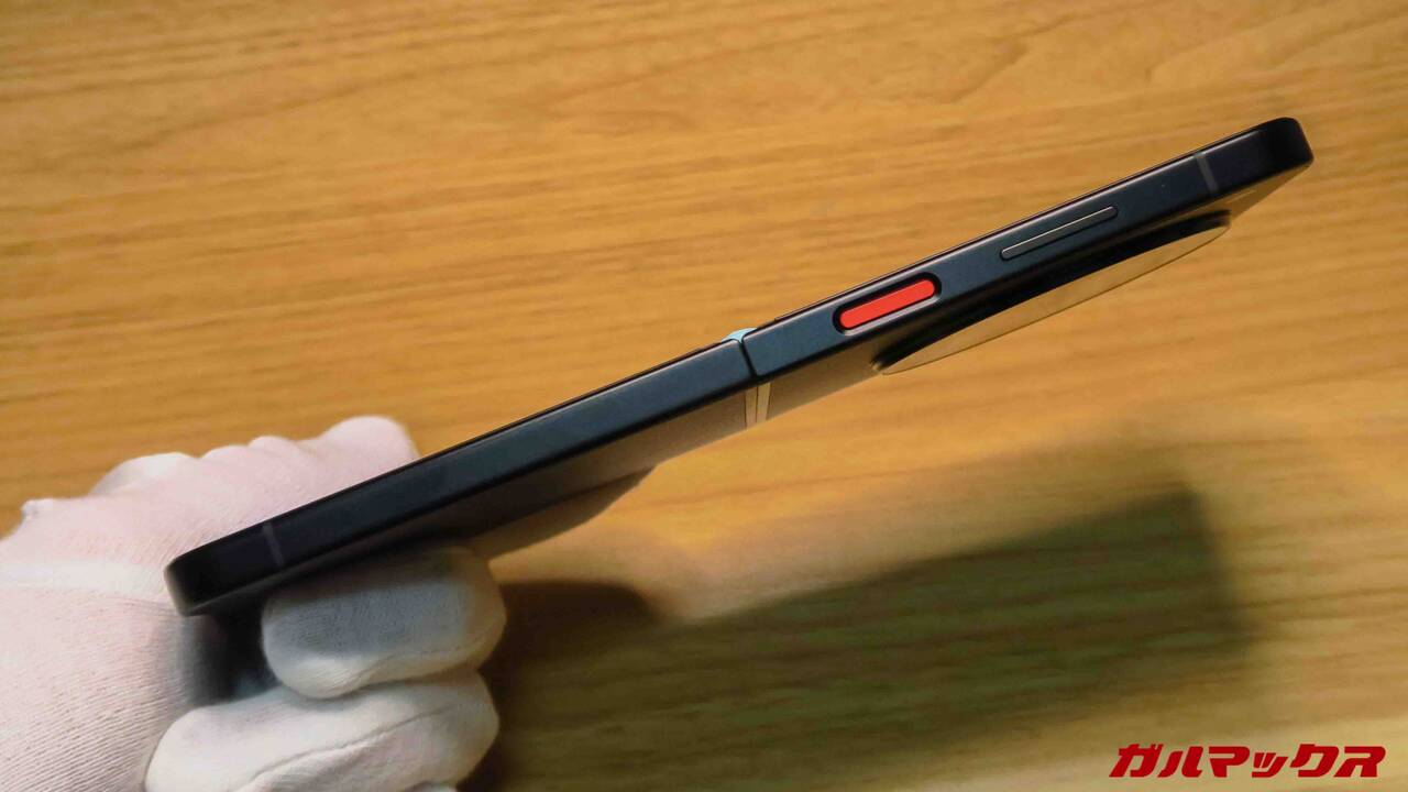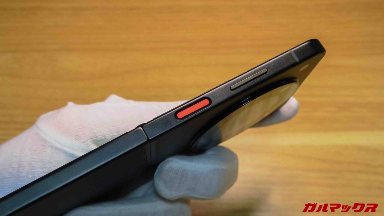 ▼カラーはブラックなんだけど、この電源キーの赤いアクセントが非常にカッコいいっす!これこそまさに、nubiaらしいセンスっすよねぇ(`・ω・´)。↓