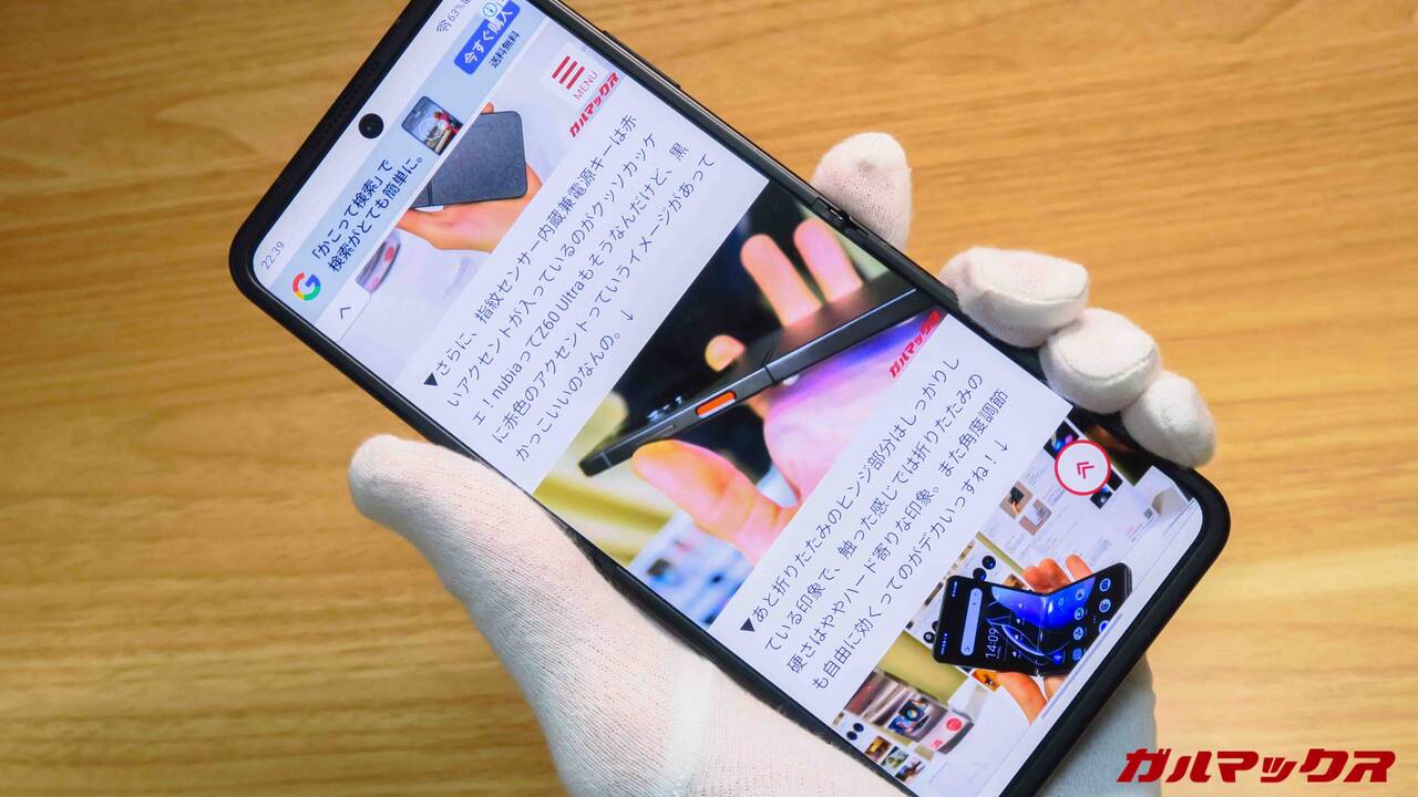 nubia Flip 5G、ディスプレイは非常に縦長ってのが特徴!これもクラムシェルあるあるです。それ故タテに一発で表示されるコンテンツの量も大きくなります。