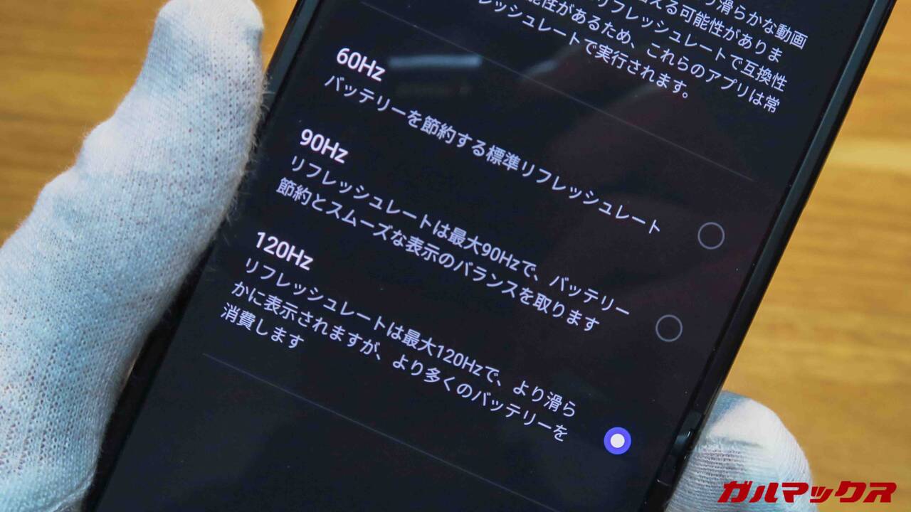 ▼最大120Hzの高リフレッシュレートも対応でなめらかに動かせます。ただ、この120Hz表示はわりと不安定でした。↓