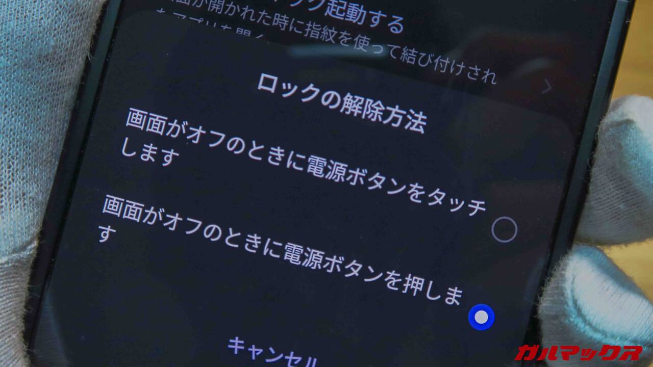普通のAndroidでは触れただけで認証しかできず結構誤認証が起こって鬱陶しかったので、この設定が組めるってのはありがたい!