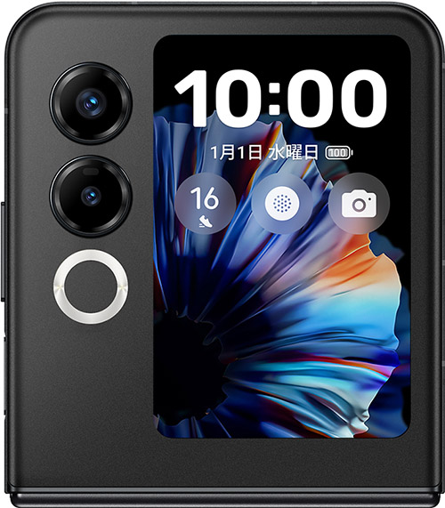 先代のNubia Flip 5Gでは1.43インチの円形だったサブディスプレイですが、本機は約3.0インチの長方形ディスプレイを搭載。長方形になったことで画面としてかなり見やすくなりましたね。