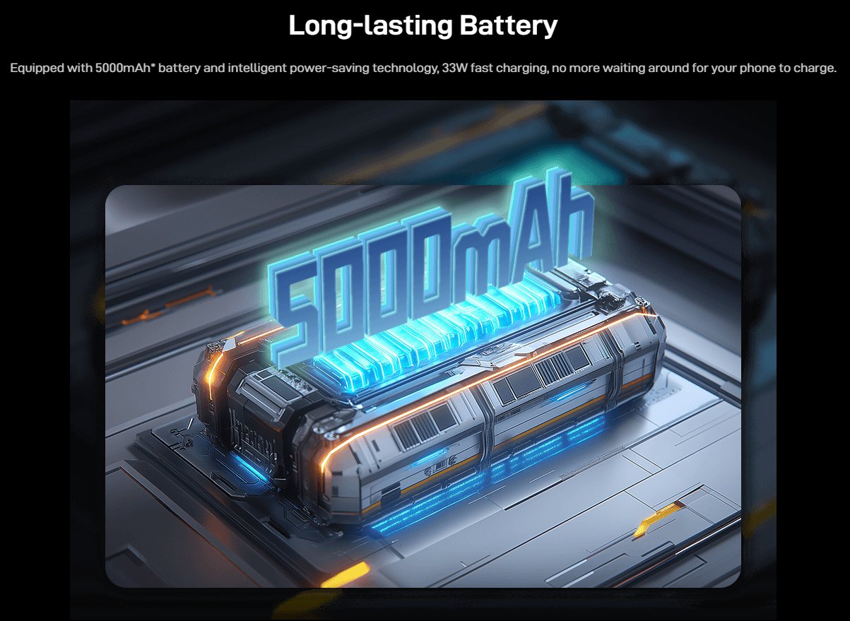 バッテリー容量は5,000mAhと十分な大きさ!急速充電は最大33Wまで対応しています。ワイヤレス充電の記載はありませんが、非対応でもおかしくない性能帯と価格なので個人的には無問題。