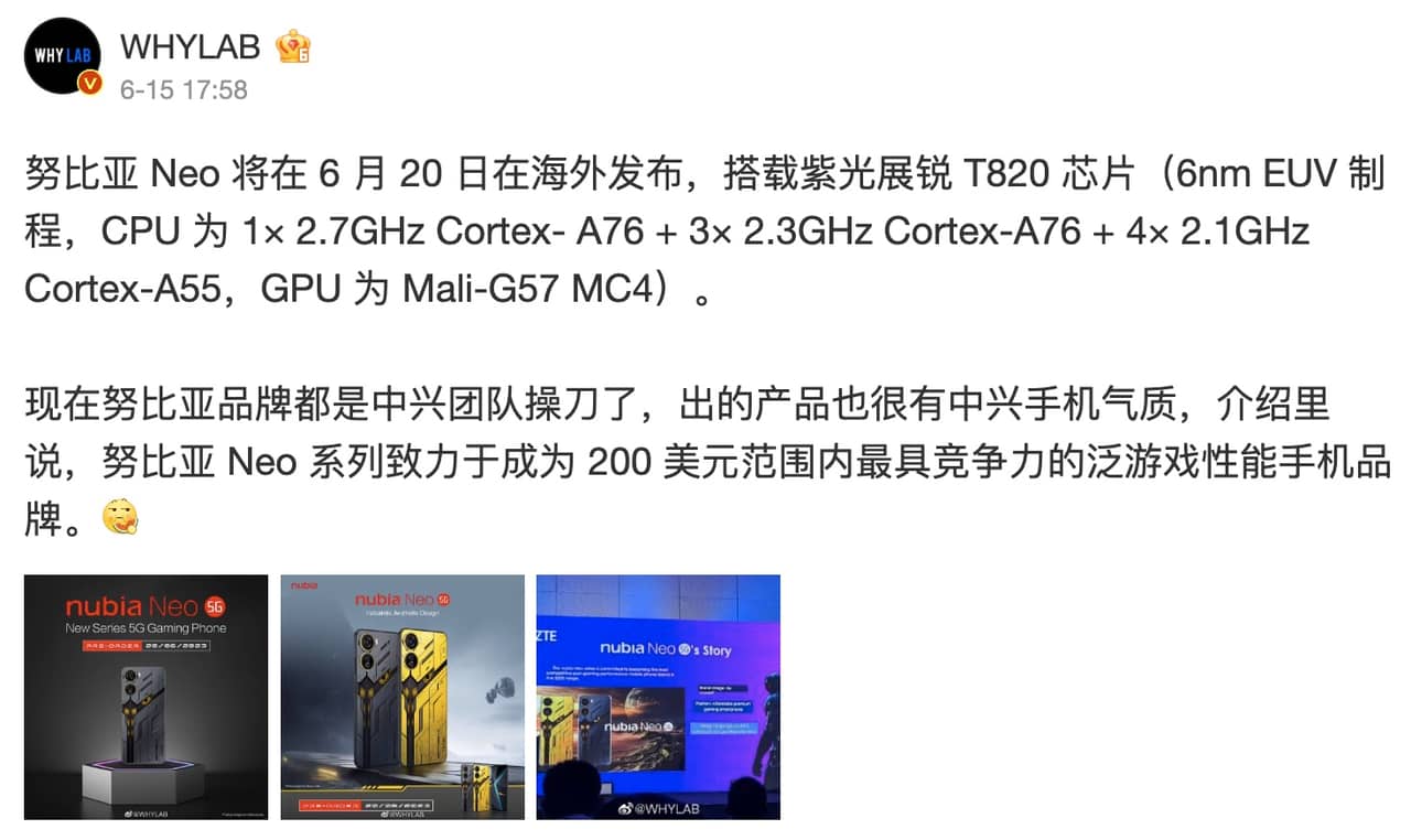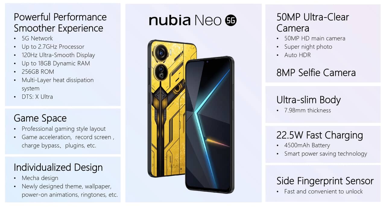 Nubia Neo 5Gが6/20リリース!200ドル台のゲーミングスマホ