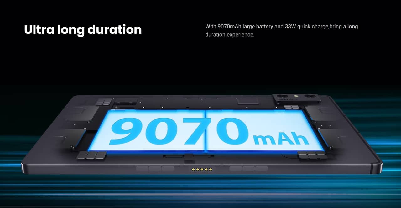 ▼バッテリー容量も9,070mAhとたっぷりサイズ!といいつつ3D処理も行うとなれば相応にバッテリー消費もあるはずなので実際使ってみないとなんとも言えんすね。急速充電は33Wまで対応しています。↓