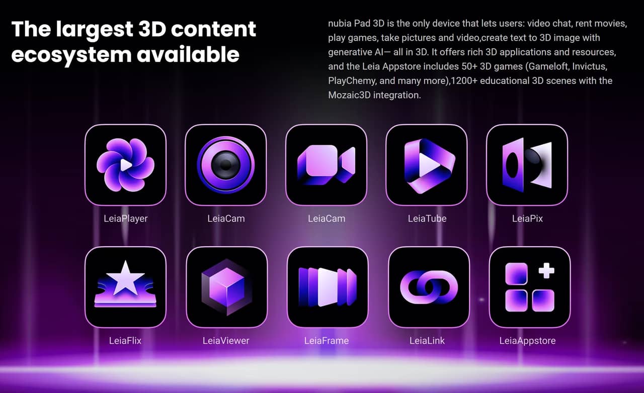 • 3Dコンテンツを楽しめるLeiaアプリ収録