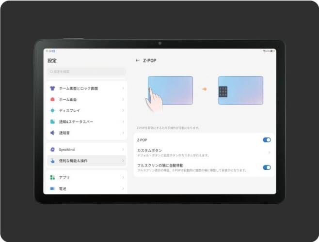 大型タブレットの「nubia Pad SE」は音量ボタンを押すのが大変だったりするものですが、クイックナビゲーションがあれば音量コントロールやスクリーンショットの撮影が画面上からできてしまいます!