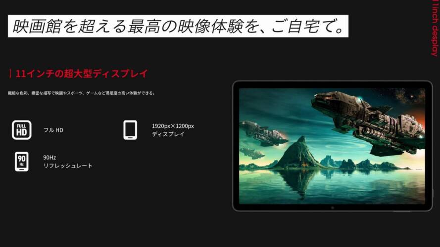 ▼ディスプレイは11インチのフルHD!超大型でコンテンツ干渉やマルチタスクも捗りそうですね!↓