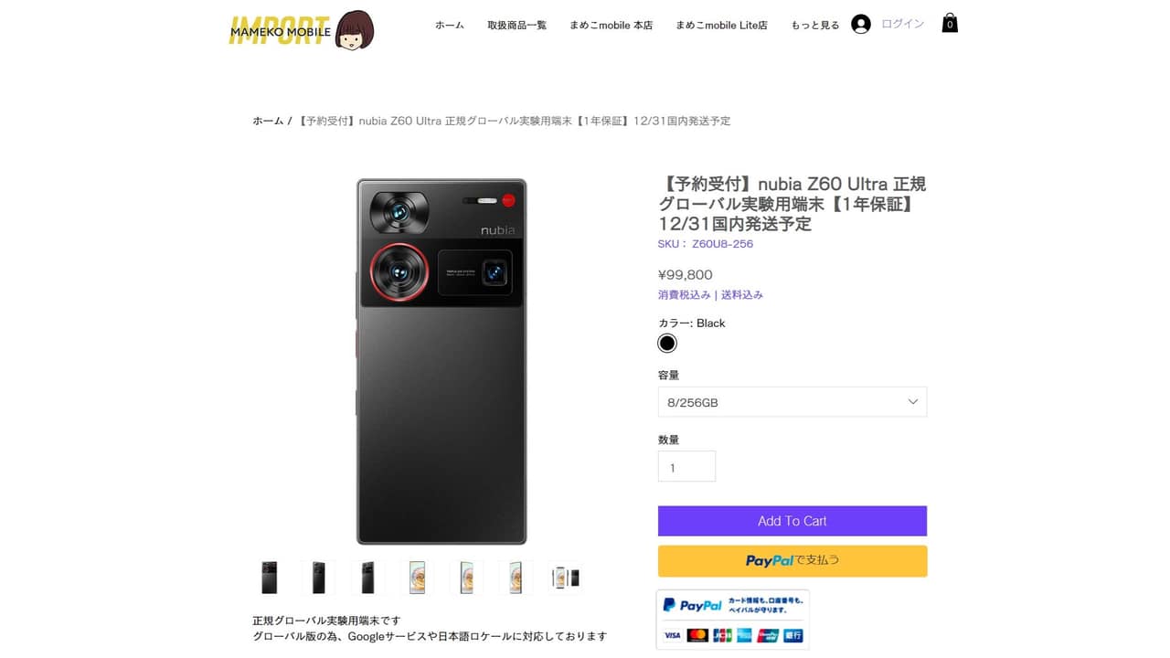 nubia Z60 Ultraをどこで買おうか迷っている方はまめこmobileさんも是非チェックしてみて!ちなみにまめこmobileさんとこは色んな海外スマホを扱っているので、海外スマホを購入したい!って方もチェックしてみてね!