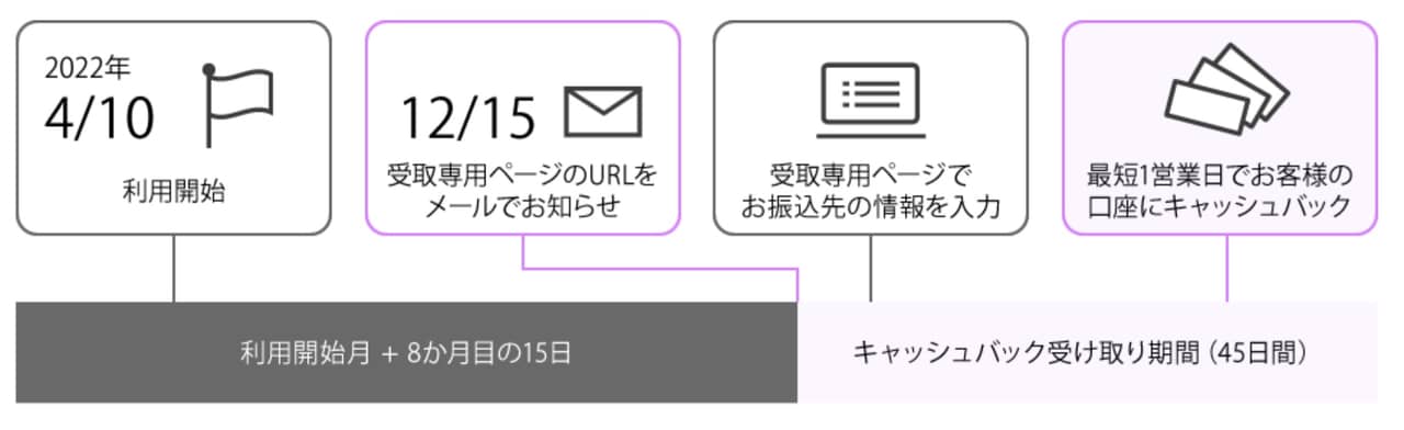 上記が「利用開始月を除く8ヶ月目」に貰えます。