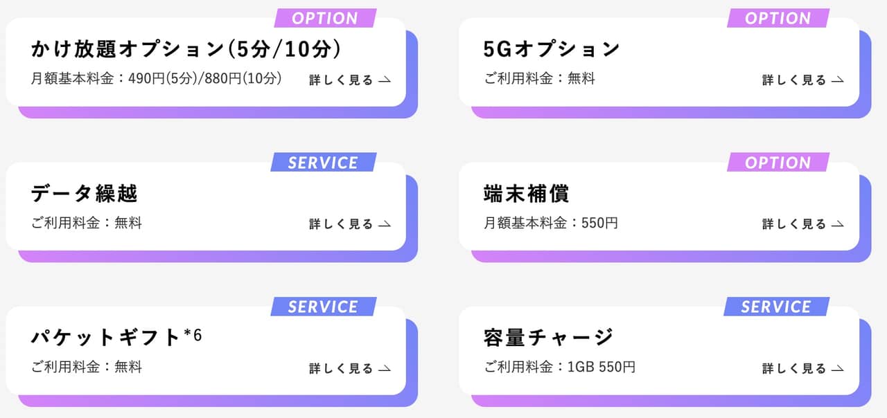 通話のかけ放題が5分または10分しか選べないのは惜しいところですが、5Gオプションは無料、データの繰越もOK、余ったデータを家族や友人にプレゼントできるパケットギフトなど便利なサービスがNEOプランLiteでも利用できます。