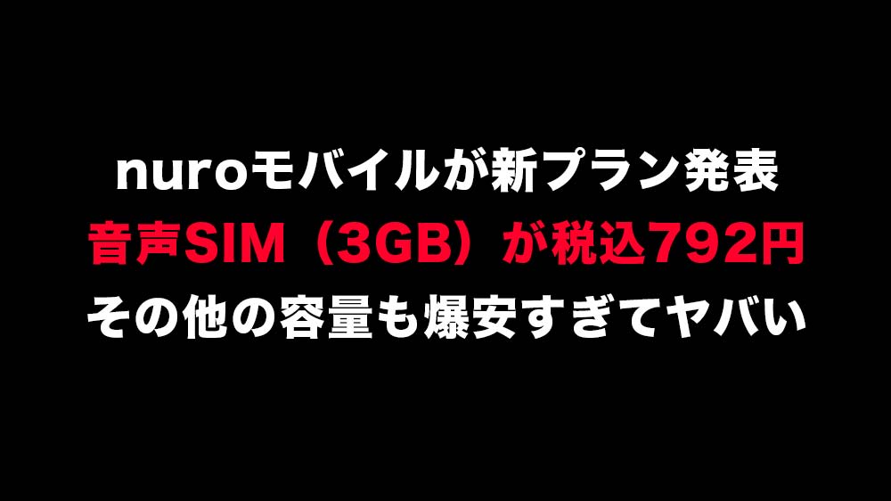 nuroモバイルの値下げヤバすぎ。音声SIM(3GB)792円〜、キャッシュバックあり