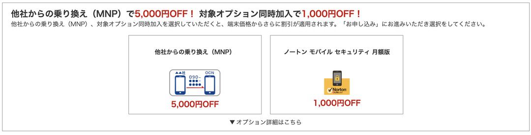 ▼こんな感じで発売記念特価でXiaomi Mi Note 10を手に入れるには音声通話SIMの申込みも必要なのでご留意下さいませ。ちなみに他社からの乗り換えで5,000円オフ、対象オプション加入で1,000円オフの追加割引キャンペーンも行っているようです。↓