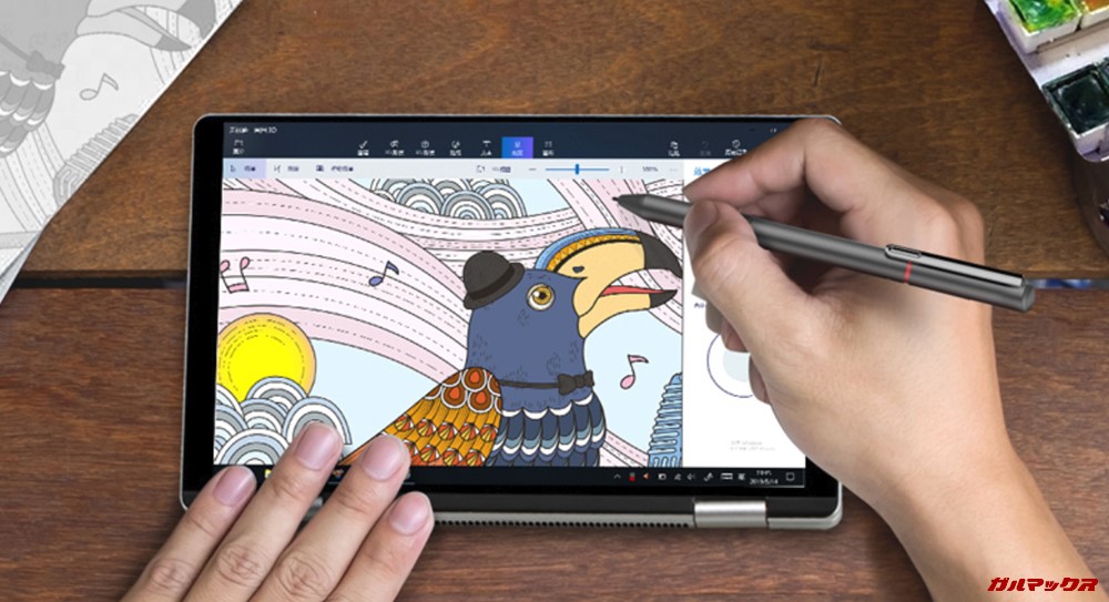 ▼One Mix 3は4096段階の感圧式スタイラスペンに対応しているのでお絵かきもOK!↓