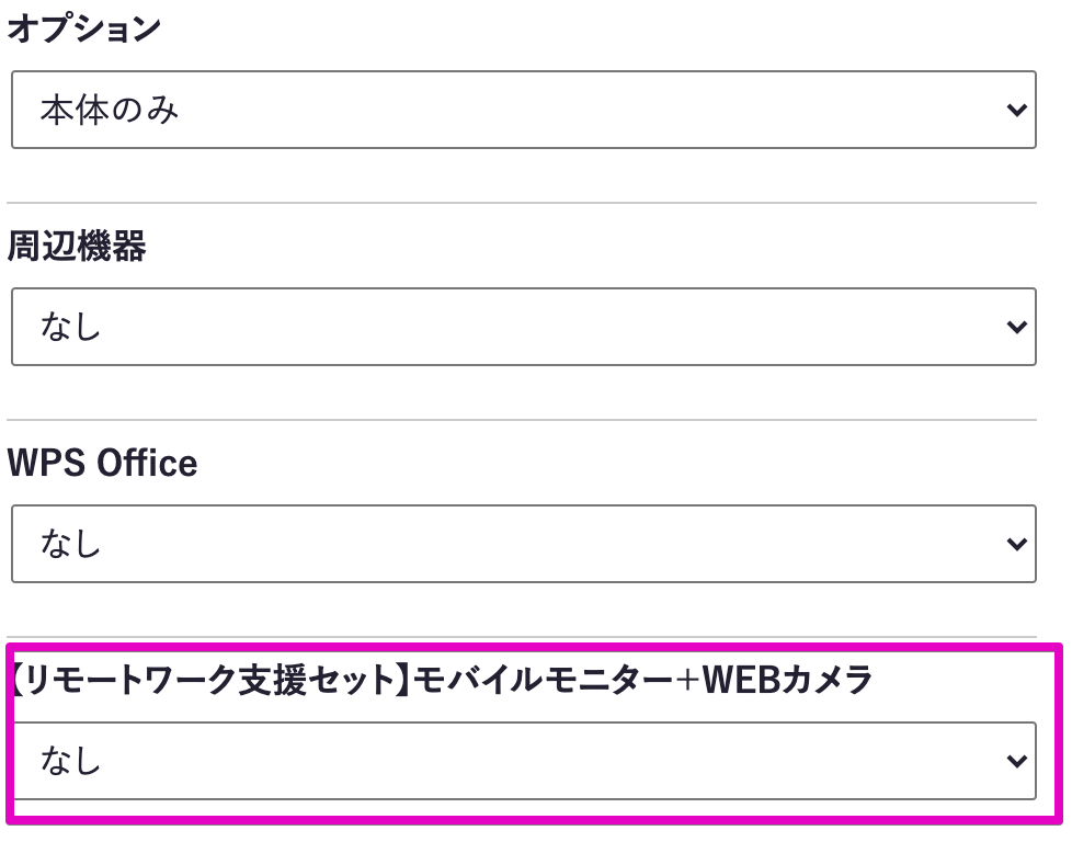 ▼リモートワーク支援特別セットは、製品購入ページの下部に表示されている項目から選択可能です!↓