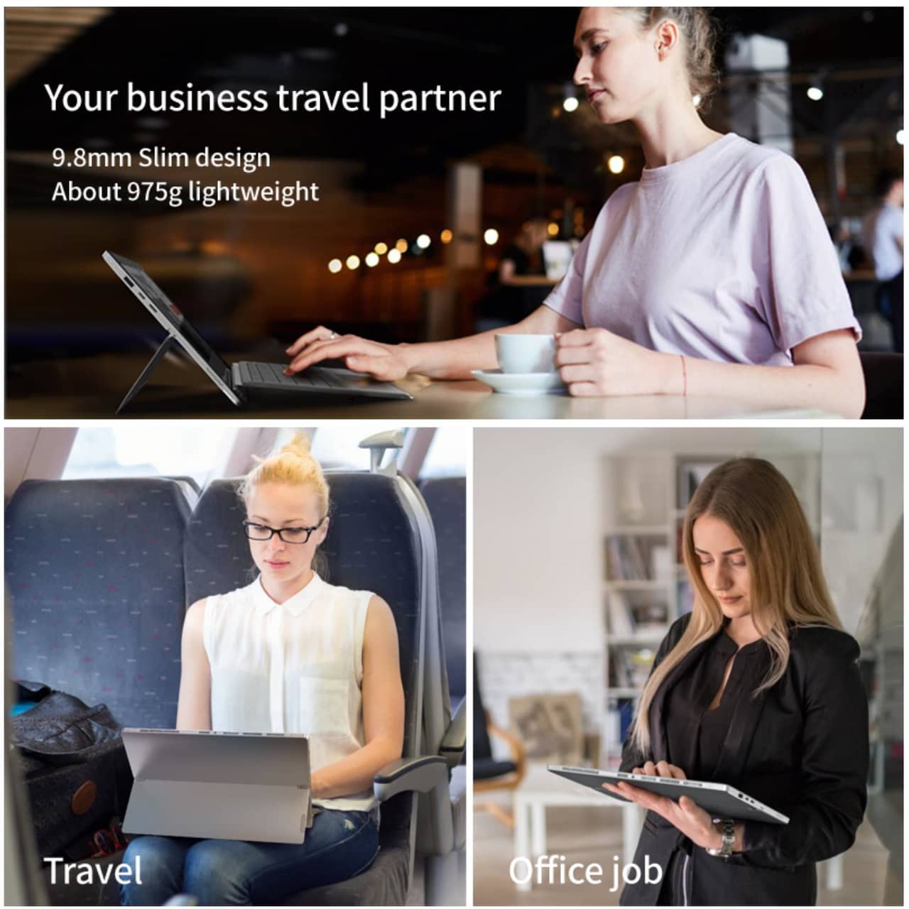 ▼本体は厚さ9.8mmで重さ975g。薄型軽量かと思ったんですが、基本は本体のみでキーボード別売りなんでこれは本体のみの厚みと重量っぽい。キーボード取り付けるとどのくらいの重さになるんだろう。↓