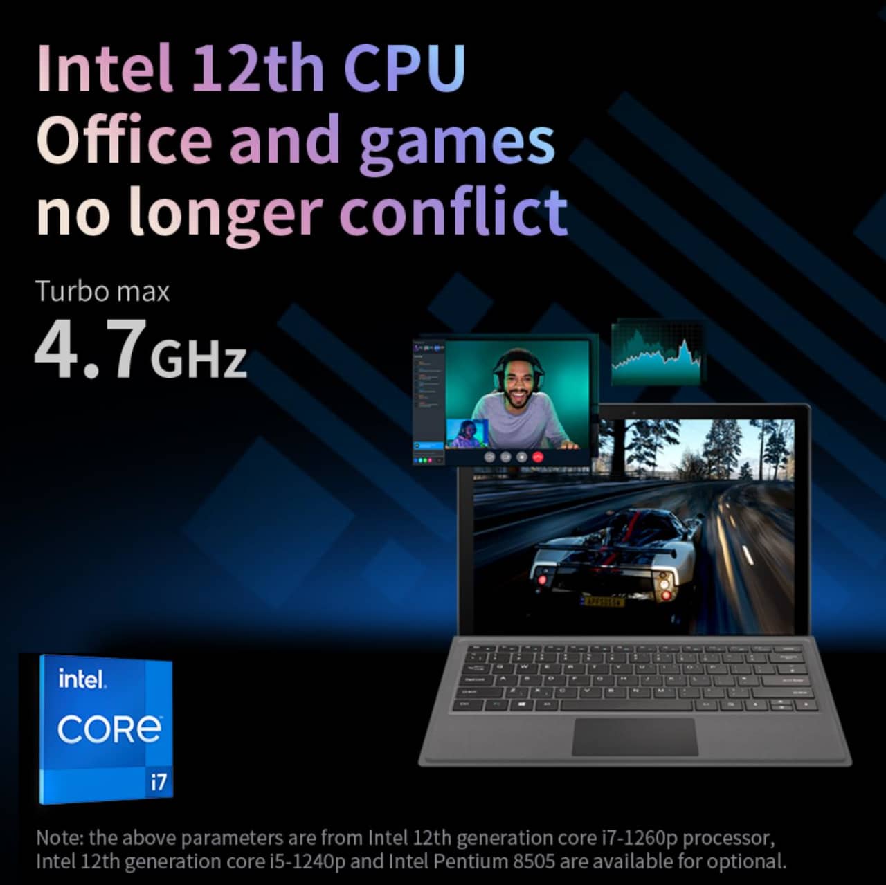 ONE-NETBOOK T1のCPUはIntelの「Pentium Gold 8505」「Core i5-1240P」「Core i7-1260P」の3つから選択できるようになっていてます!搭載するCPUにより容量が変わる点が注意ポイントです!