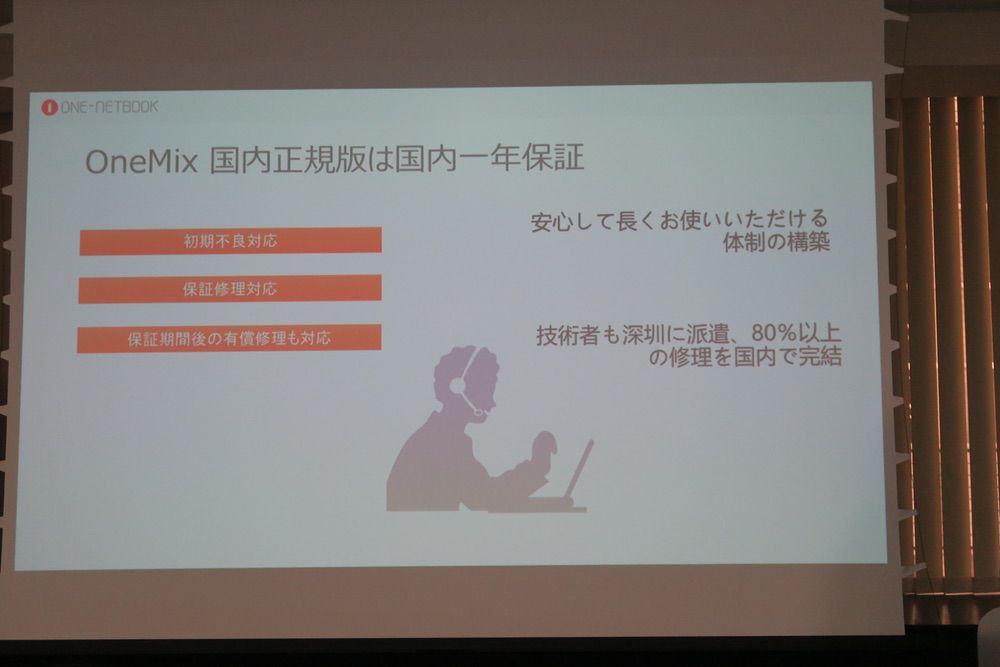 ▼その他、日本での修理受付も対応できる範囲が格段に向上していることをアピール。現時点では80%もの修理を日本国内で対応できるとのこと。確かに海外製品は万が一の故障時が一番困る時。日本に拠点がなければ海外での修理になりますからね。OEN-NETBOOK製品は大多数の修理を国内で行えるので大きな安心感に繋がるはず。