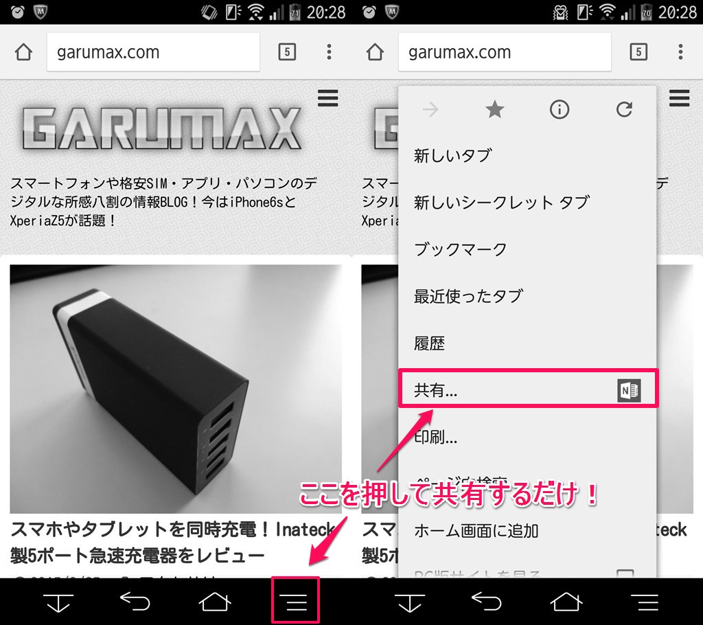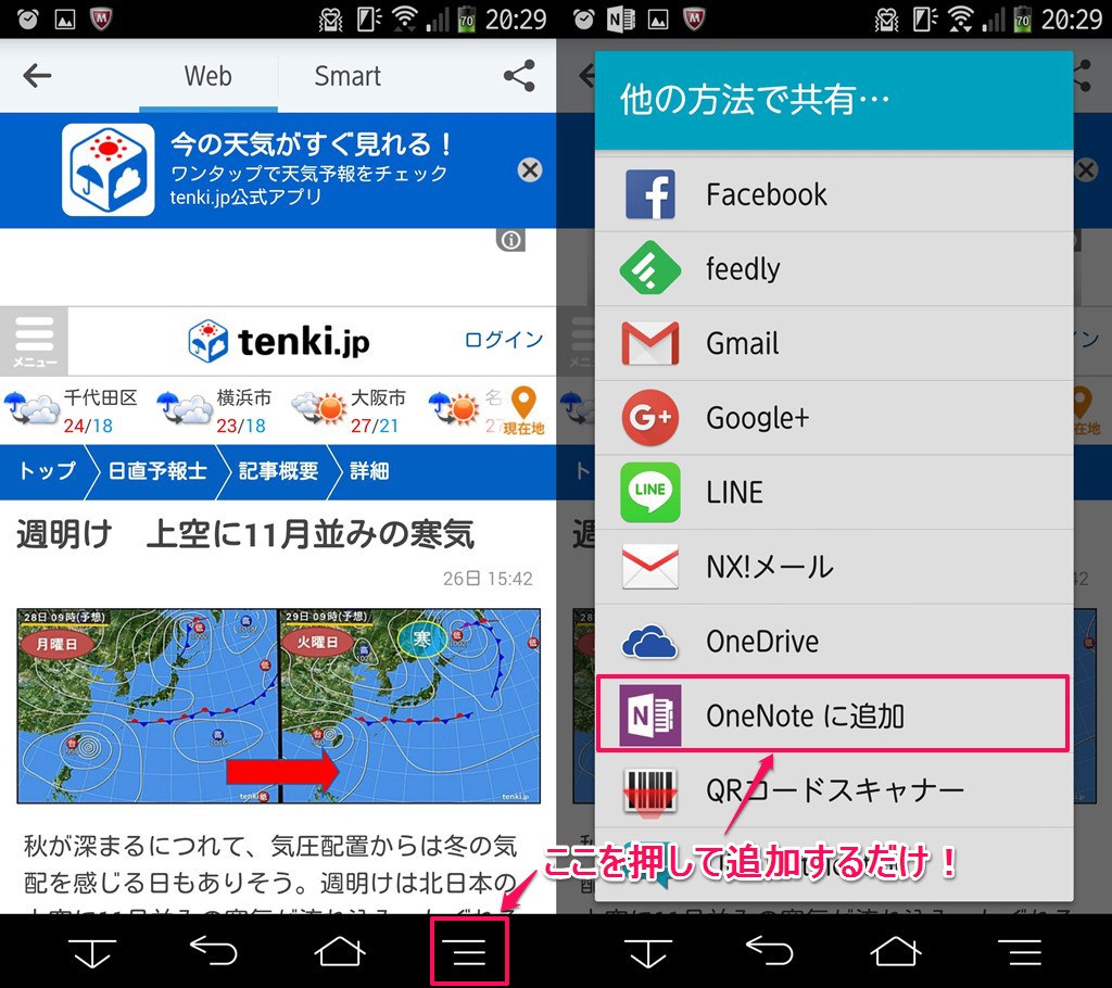 操作は簡単!共有からOneNoteを選ぶだけ!