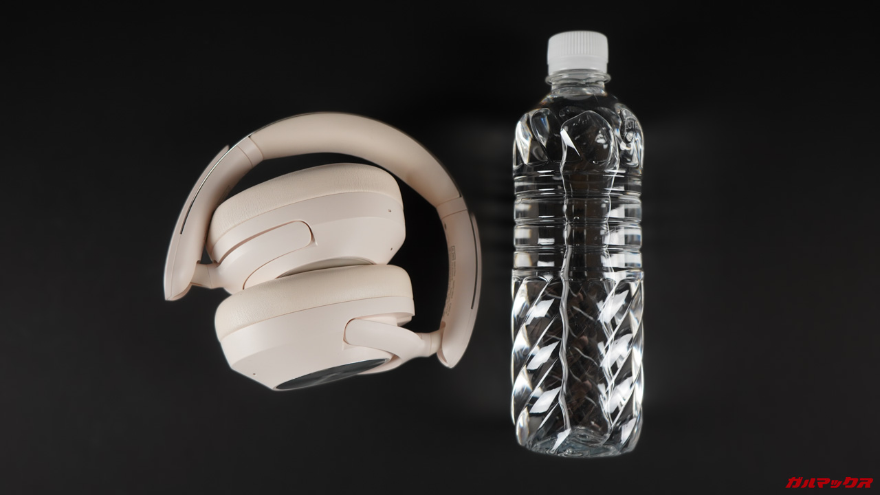 ▼OneOdio Focus A6のサイズはこんな感じ!500mlのペットボトルと並べているんですが、めっちゃ巨大という訳ではなくなかなかコンパクトです。↓