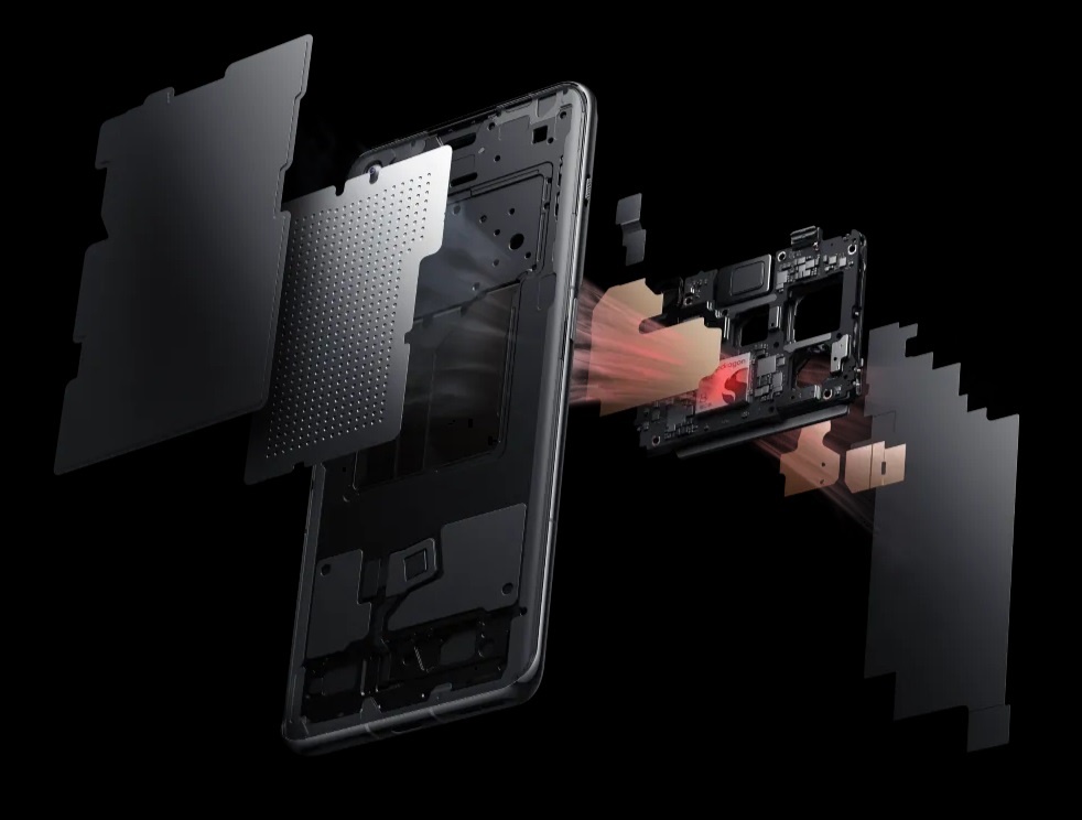 ▼ハイエンドチップゆえに発熱が懸念点ですが、冷却パネルを挟むように配置しているので発熱を抑えられるようになっています。長時間安定してゲームプレイができるかも注目。↓
