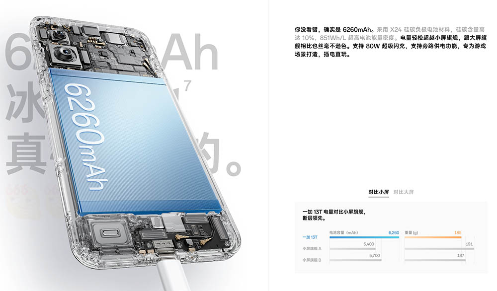 ▼バッテリー容量は6,260mAh。80W(SUPERVOOC)の急速充電にも対応しています。↓