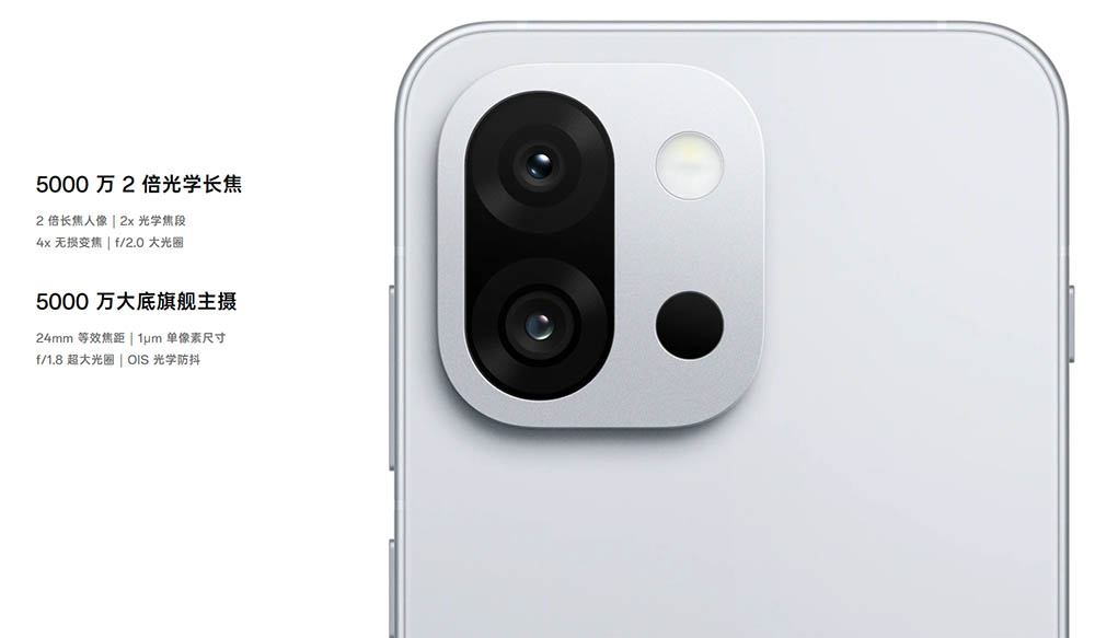 ▼カメラは50MP(広角)+50MP(望遠)のデュアルカメラ構成。↓