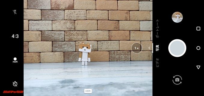 写真モードでは画面比率は4:3、19:9、1:1に対応。縦長ディスプレイなので全画面撮影は19:9となります。