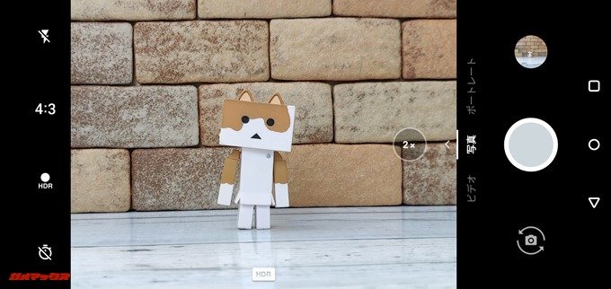 OnePlus 6のカメラアプリはワンタップで倍率を1倍と2倍に切り替えられるボタンが備わっています。