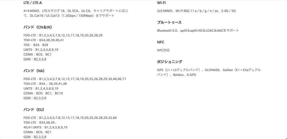 最後にOnePlus 7Tに対応するネットワークバンドをご紹介します。