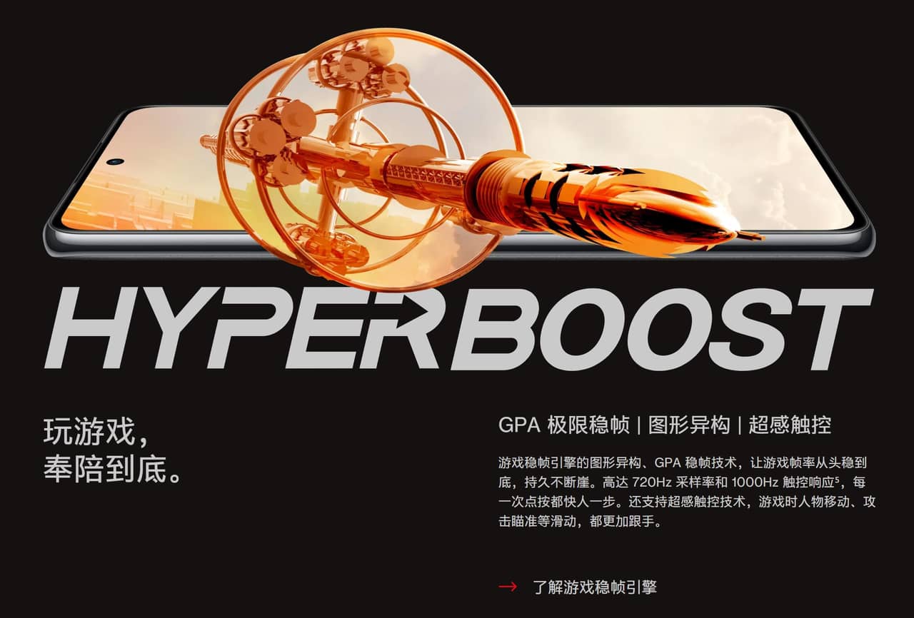 ▼ゲームモード「HyperBoost」に対応しており、このモードをオンにすることでゲームにリソースを割り当てて動作を最適化させたり、またタッチサンプリングレートを最大1,000Hzにすることで、超細かいタッチ操作も行えるようになる等ゲームプレイ面も強化!↓