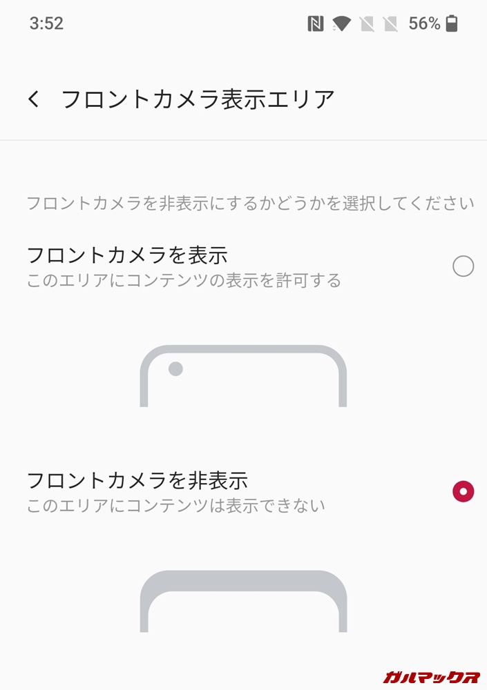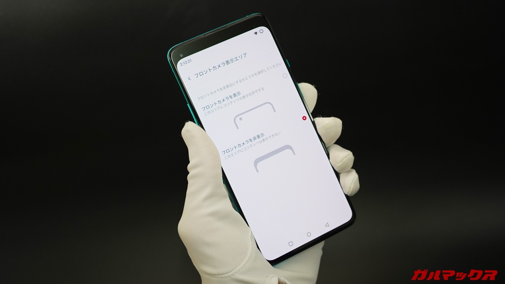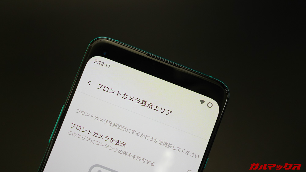 ▼このOxygen OS、ノッチを隠すようにすると「パンチホールまでの範囲がすべて表示されなくなる」という挙動になります。↓